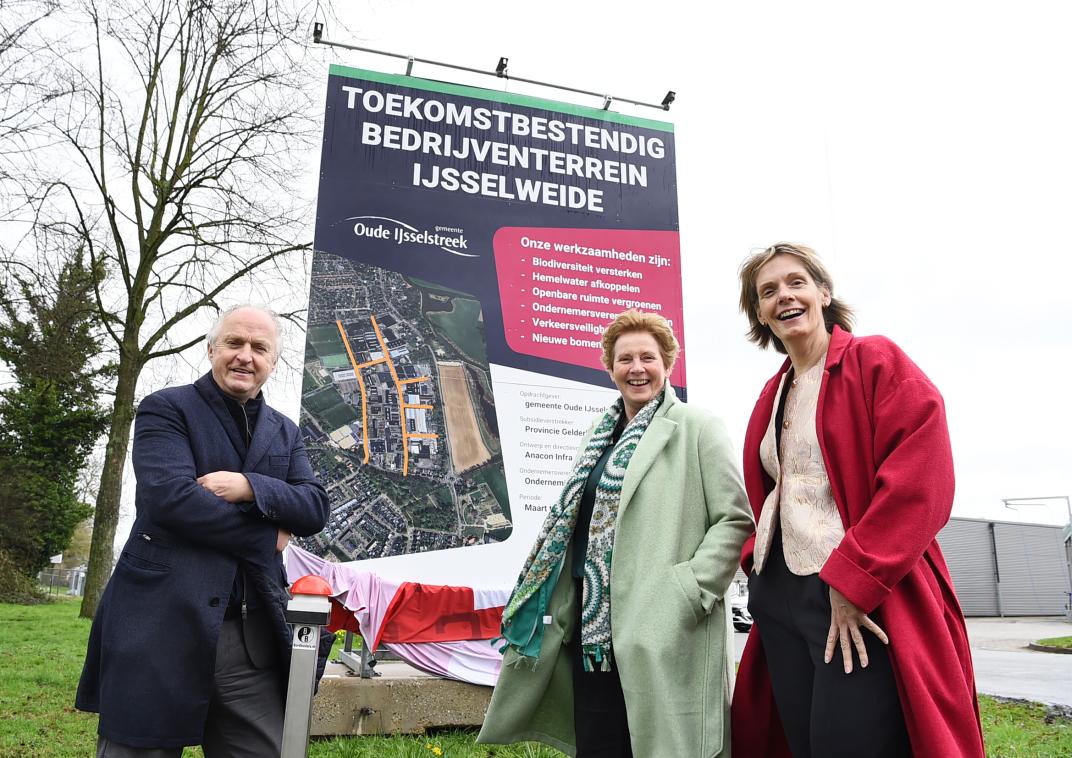 Afgelopen woensdag onthulden wethouders Ria Ankersmit en John Haverdil en gedeputeerde Helga Witjes van de provincie Gelderland het bouwbord bij bedrijventerrein IJsselweide.